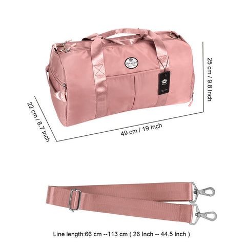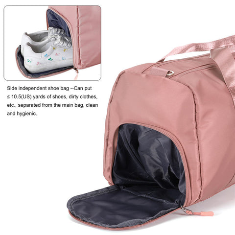 Includes 1 x large capacity main bag, 1 x wet and dry separation bag, 1 x side independent shoe bag, 1 x side zip pocket, 1 x front pocket, 1 x internal zip pocket.